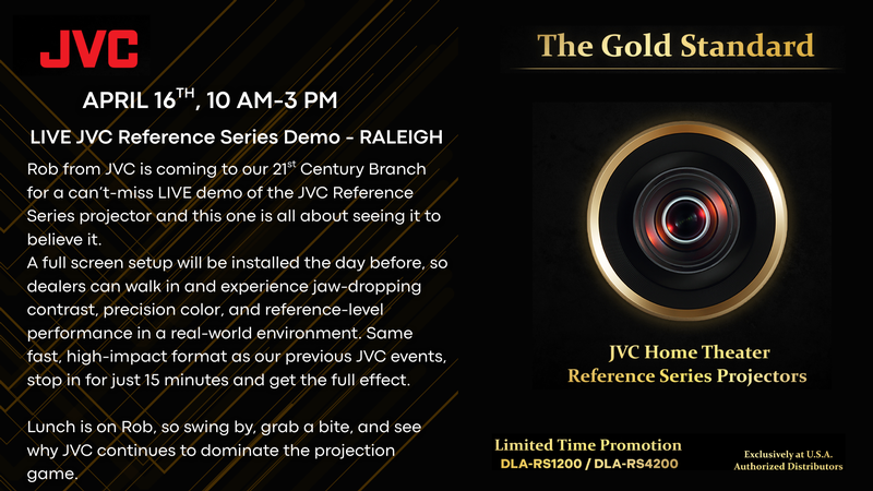 Rob from JVC is coming to our 21st Century Branch for a can’t-miss LIVE demo of the JVC Reference Series projector and this one is all about seeing it to believe it.