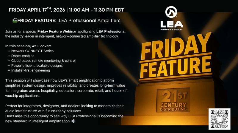 Join us for a special Friday Feature Webinar spotlighting LEA Professional, the industry leader in intelligent, network-connected amplifier technology..
